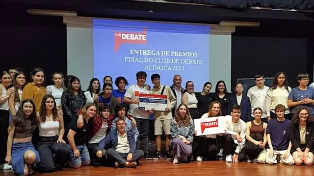 O equipo ‘Xente que fala’, formado por alumnado do IES do Milladoiro, alzouse esta finde semana, por segunda vez consecutiva, coa final do Club de Debate Alingua, celebrada nesta edición na Casa da Cultura de Bertamiráns (Ames). En total, ao longo da competición, participaron 140 estudantes de nove concellos de toda Galicia: Ames, Teo, Carballo, Santa Comba, Val do Dubra, Santiago de Compostela, Ferrol, Pontevedra, Dodro e Rois.
