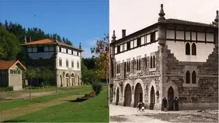 A la izquierda, estado actual de la Estación da Pontraga y a la derecha, cuando aún funcionaba / Cedida